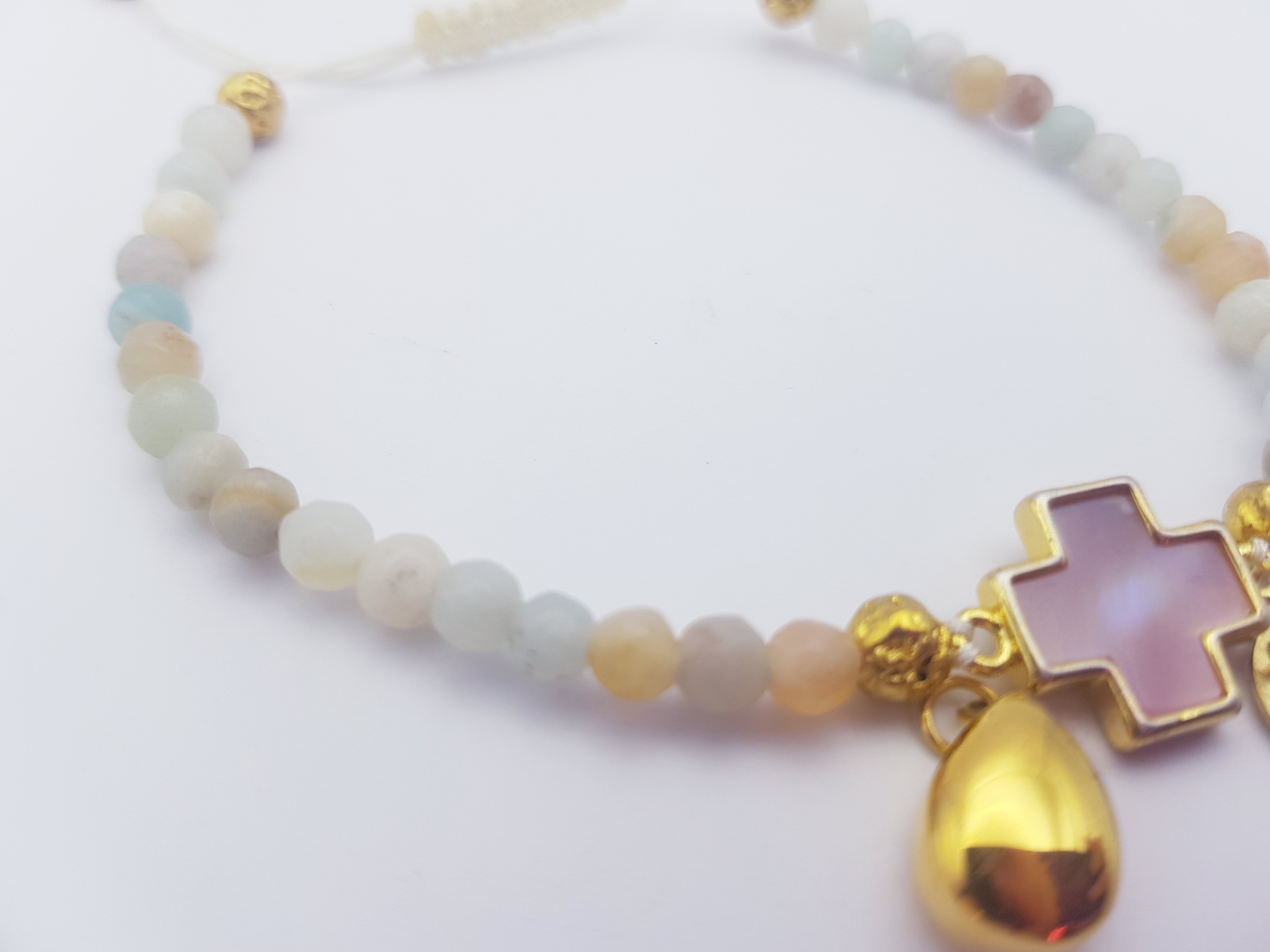 Das Ascheschmuck Armband besteht aus zarten 4 mm grossen Edelsteinperlen, die dem Schmuckstück eine elegante und subtile Ausstrahlung verleihen. In der Mitte des Armbands befindet sich ein anmutiger Charm in Form eines Herzens oder Kreuzes, der dem Schmuck eine tiefere emotionale Bedeutung verleiht.