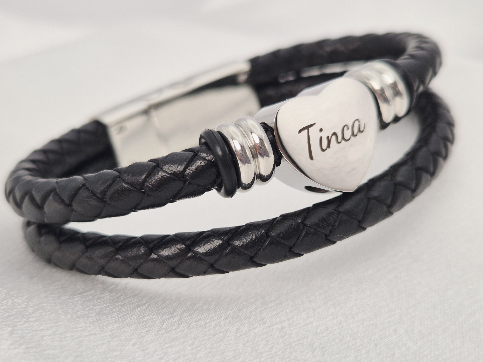 Das Ascheschmuck Armband aus Leder zeichnet sich durch ein Edelstahl-Herz-Zwischenteil aus, das eine kleine Menge Asche aufnehmen kann. Zudem verfügt der Verschluss über einen Hohlraum, der ebenfalls mit Asche gefüllt werden kann. Dieses Armband ist somit ein berührendes Erinnerungsstück, das es ermöglicht, die Asche eines geliebten Menschen oder Haustiers diskret und symbolisch bei sich zu tragen.