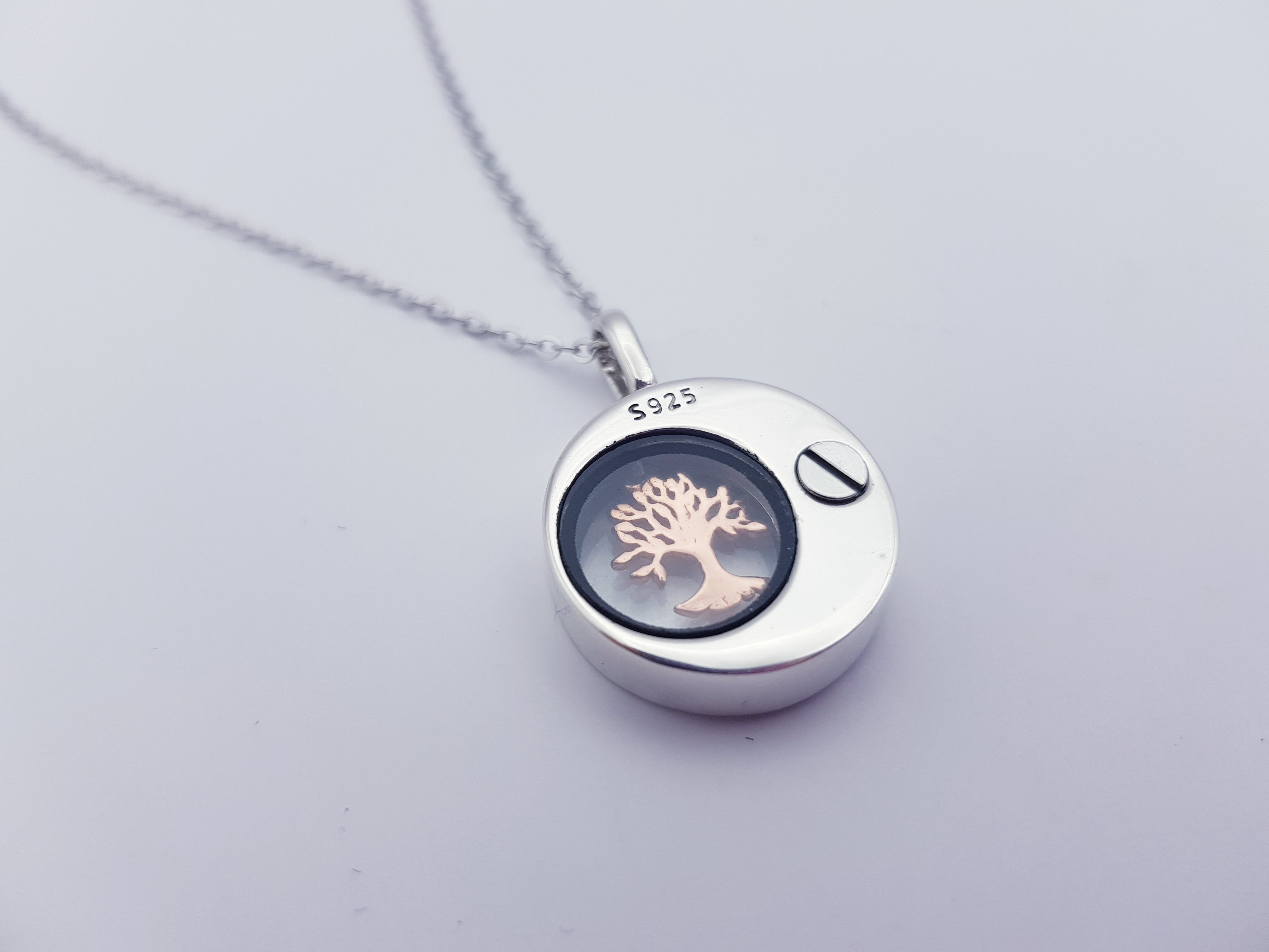 Eine dezent versteckte Kammer im Inneren des Medaillons bietet Platz für eine kleine Menge Asche, bleibt aber von aussen unsichtbar. So verbindet der Anhänger stilvolle Eleganz mit emotionaler Bedeutung und ermöglicht es, eine wertvolle Erinnerung stets nah am Herzen zu tragen.
