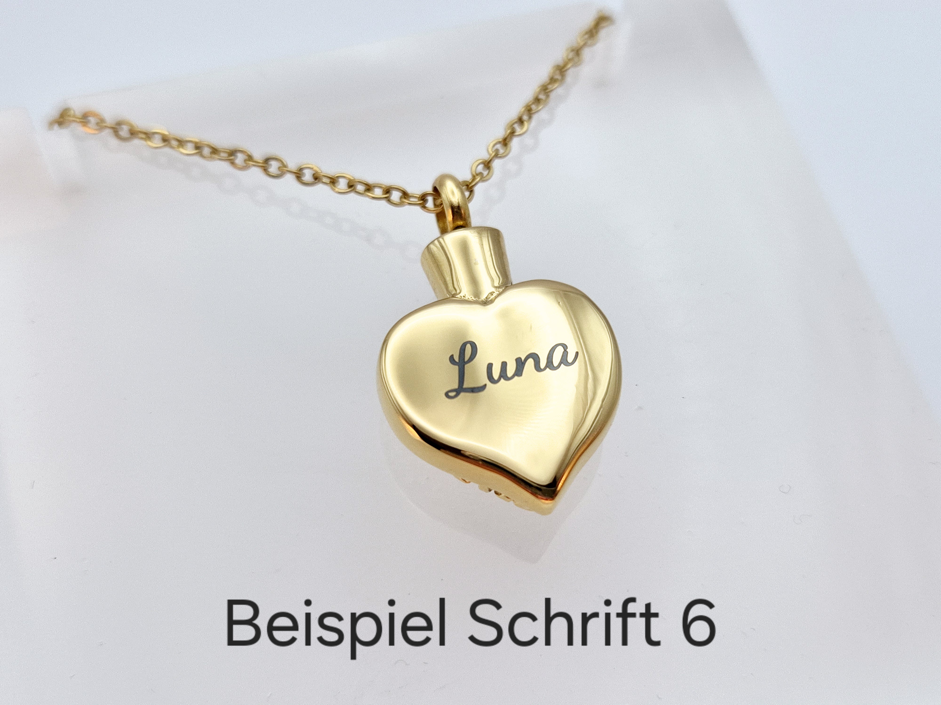 Gravur Service: Machen Sie Ihr Schmuckstück zu etwas ganz Besonderem! Wählen Sie aus sechs verschiedenen Schriftarten und lassen Sie einen Namen auf der Rückseite des Anhängers gravieren. Bitte beachten Sie, dass personalisierte Schmuckstücke vom Umtausch ausgeschlossen sind – ich bitte um Ihr Verständnis.