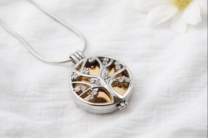 Ein Ascheanhänger mit dem Baum des Lebens ist ein wunderschönes und symbolisches Erinnerungsstück, das die Bedeutung des Lebens und der Familie widerspiegelt. Der Baum des Lebens ist mit funkelnden Kristallen besetzt, um ihm ein glänzendes und auffälliges Aussehen zu verleihen.