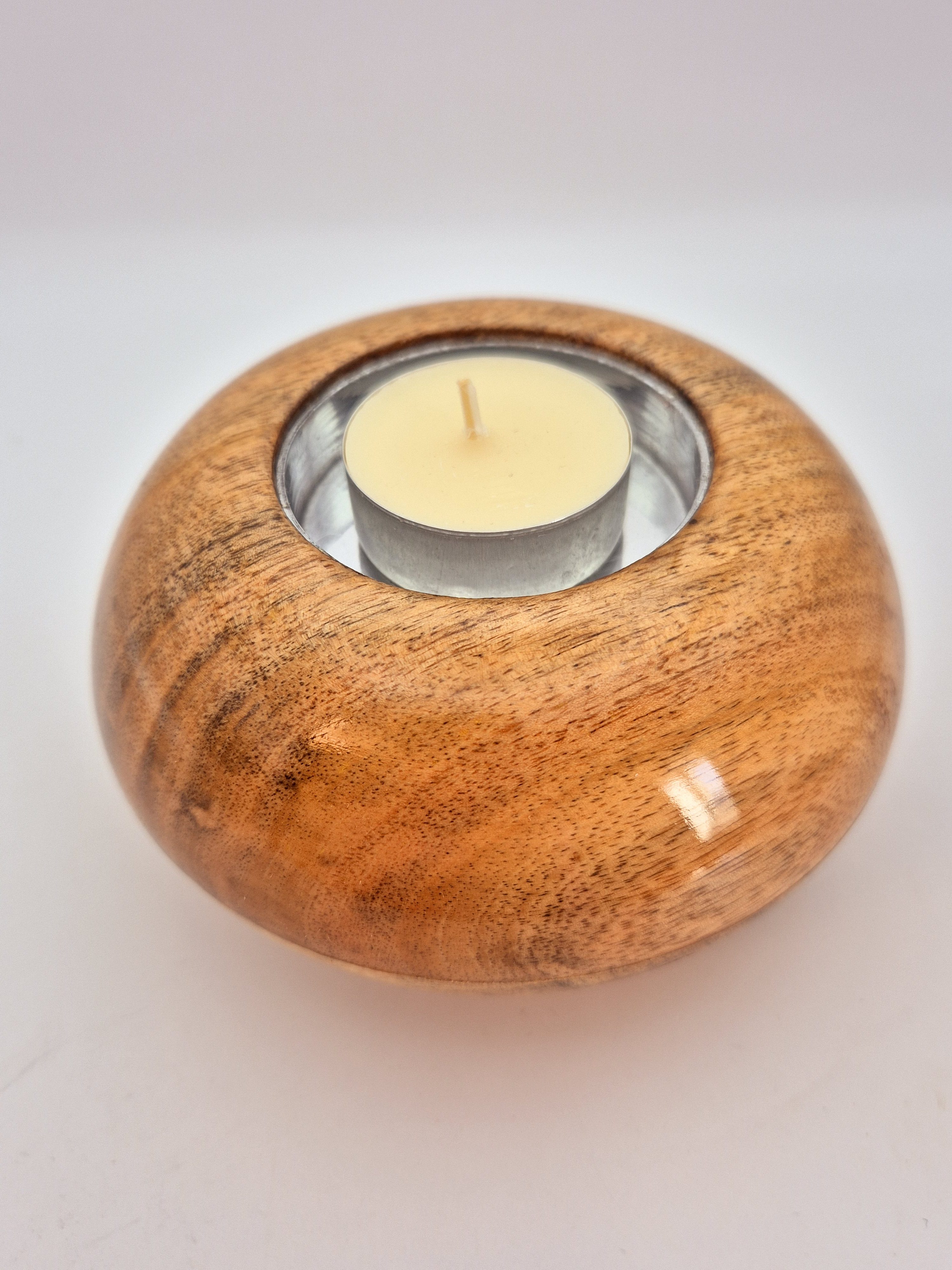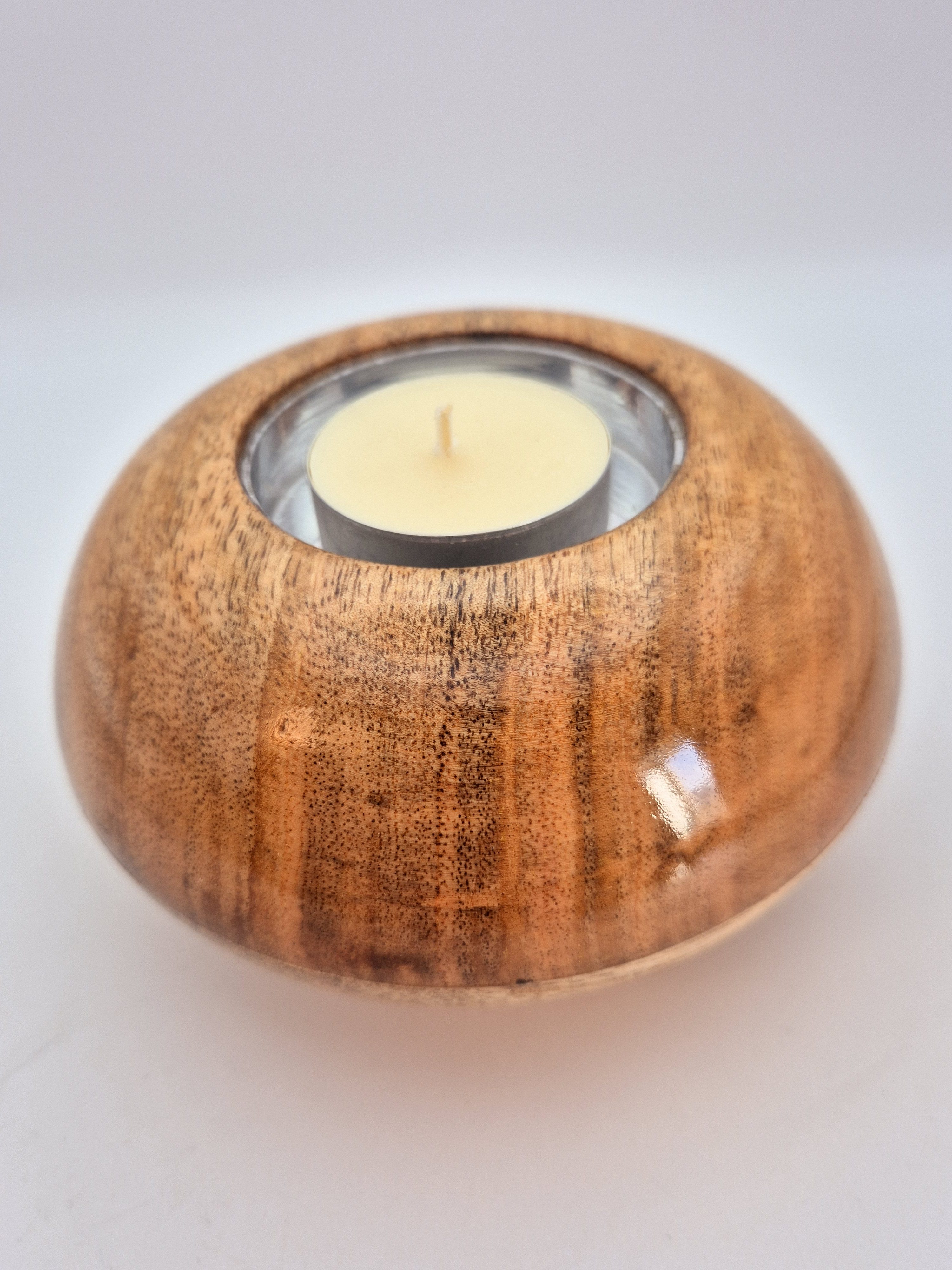 Diese Urne ist aus Mangoholz gefertigt. Das Mangoholz zeichnet sich durch seine natürliche rustikale Schönheit aus, mit einer reichen Maserung und verschiedenen Farbtönen. Was diese Urne jedoch wirklich einzigartig macht, ist ihre zusätzliche Funktion als Kerzenhalter. Diese Kombination aus Urne und Kerzenhalter vereint zwei symbolische Elemente, die tiefe Bedeutungen tragen.