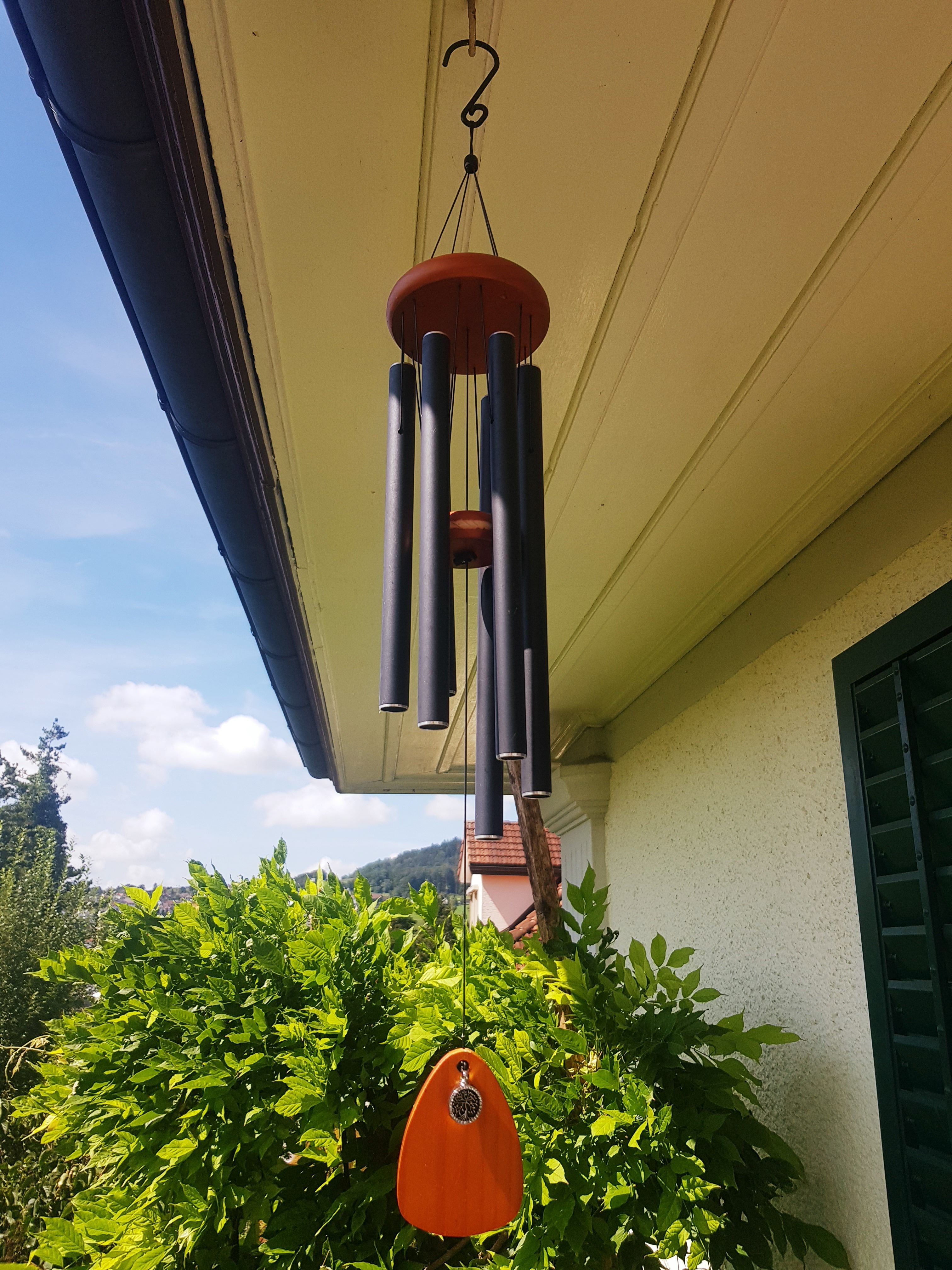 Wenn der Wind das Windspiel sanft bewegt und die Glocken erklingen lässt, breitet sich ein Gefühl des Friedens und der liebevollen Erinnerung aus. Es ist, als ob die Klänge selbst eine leise Botschaft von dem geliebten Wesen tragen, das nun in Harmonie mit der Natur ruht.