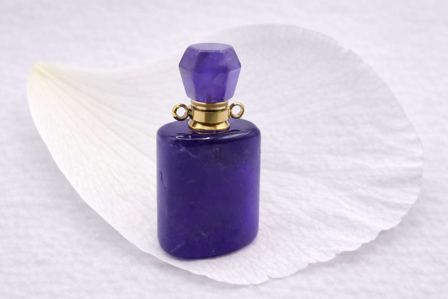 Violett: Amethyst, einem violetten Halbedelstein, gefertigt und hat eine glatte und polierte Oberfläche, die sanft das Licht reflektiert.